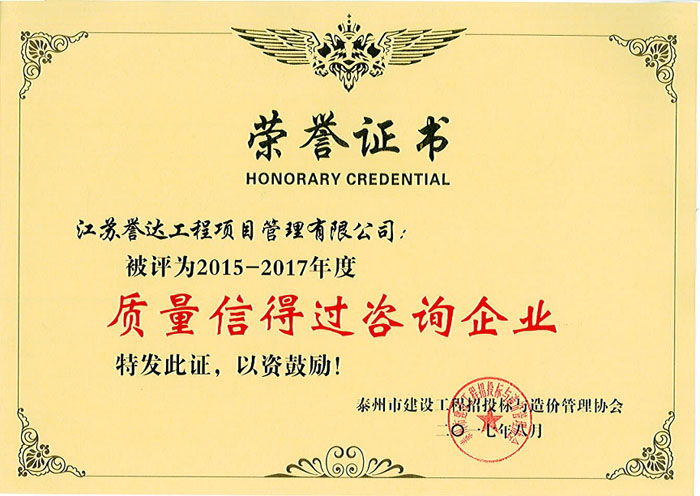 我公司成立于1996年,注冊資金6000萬元,公司有關資質為:工程造價咨詢甲級,房屋建筑工程監理甲級,市政公用工程監理甲級,人防工程監理甲級,電力工程監理乙級,水利水電工程監理乙級,公路工程監理乙級,文物保護監理乙級,招標代理資質、政府采購代理資質,工程咨詢資質。公司于1999年被江蘇省建設廳命名為省級先進監理企業、2005年及2009年獲江蘇省建設廳優秀監理企業,2008年獲江蘇省監理協會“建設監理發展二十周年工程監理先進企業”,2009年及2014年3月獲泰州市建設局“建設工程監理工作先進單位”。2001年至2012年連續十二年獲泰州市重合同守信用企業。 [ 查看詳情 ]